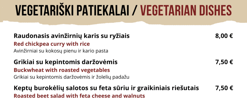 Meniu turistams
